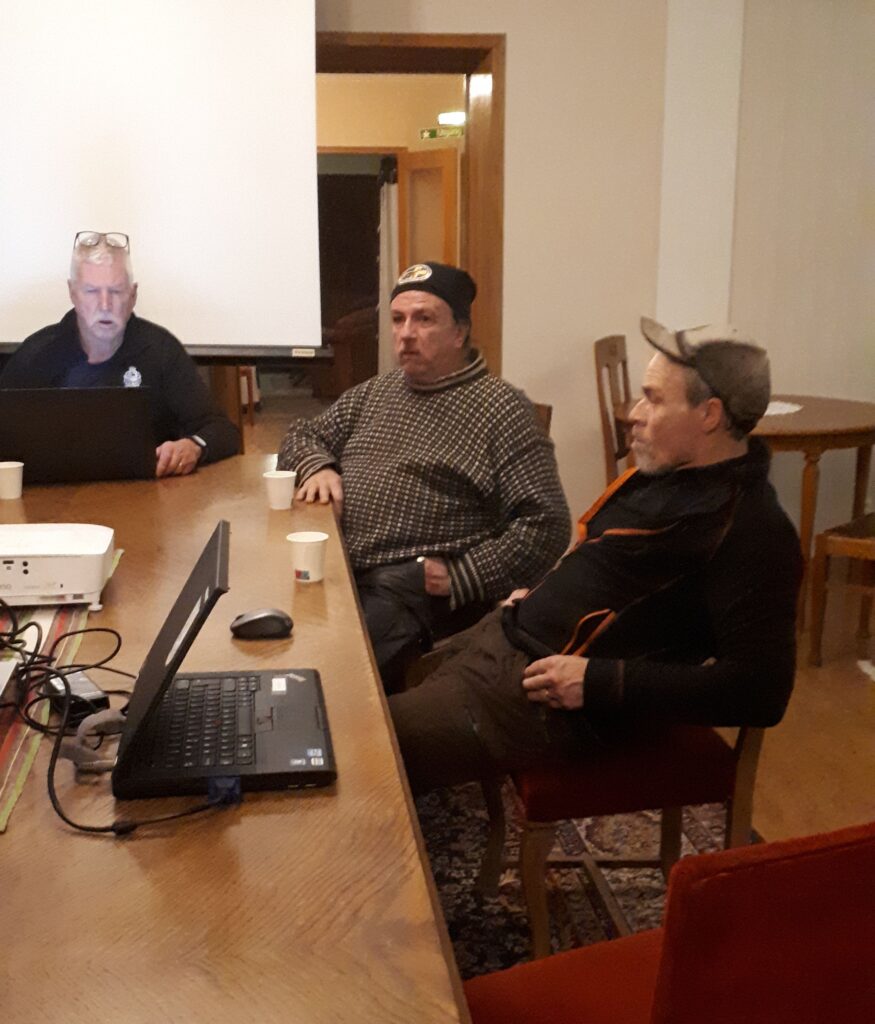Peter Sundberg och Aron Källgren lyssnar på Helges drev